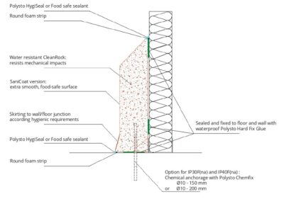 Hygienic curbs, walls and ceilings; PolySto, B-Hygienic, and Puraco are our brands. We specialize in sandwich panels that are FM-Approved with full certification at an outstanding price and speedy Delivery. Plus, we also do hygienic building components; process drains, windows, doors, lightings, bollards, and wire trays.